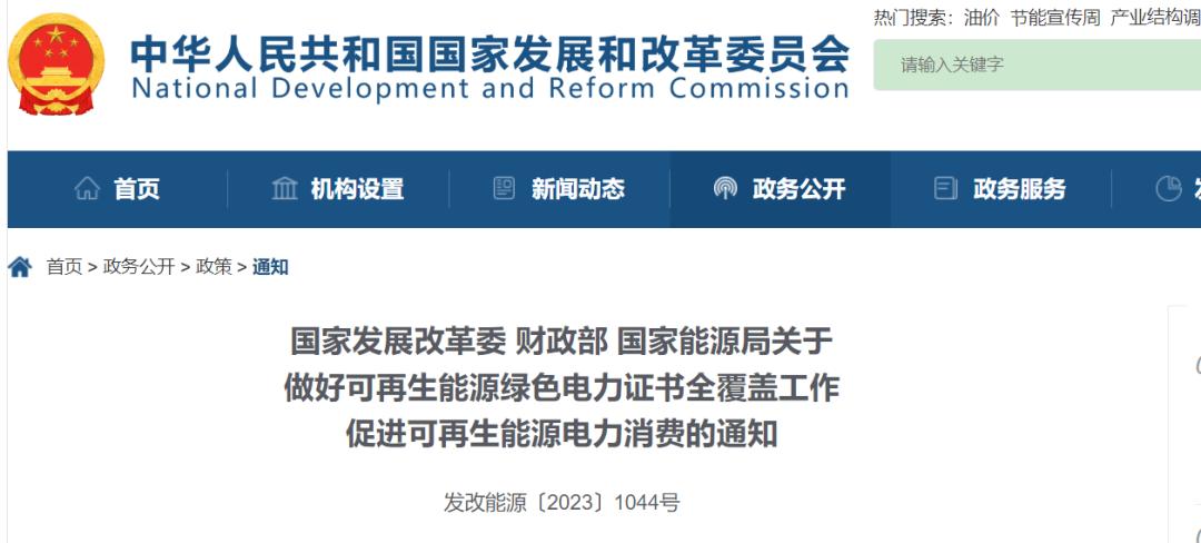 繼2022年11月,發(fā)改委發(fā)布《關于進一步做好新增可再生能源消費不納入能源消費總量控制有關工作的通知》中指出生物質發(fā)電等不納入能源消費總量的可再生能源,可再生能源綠色電力證書(以下簡稱“綠證”)是可再生能源電力消費的憑證