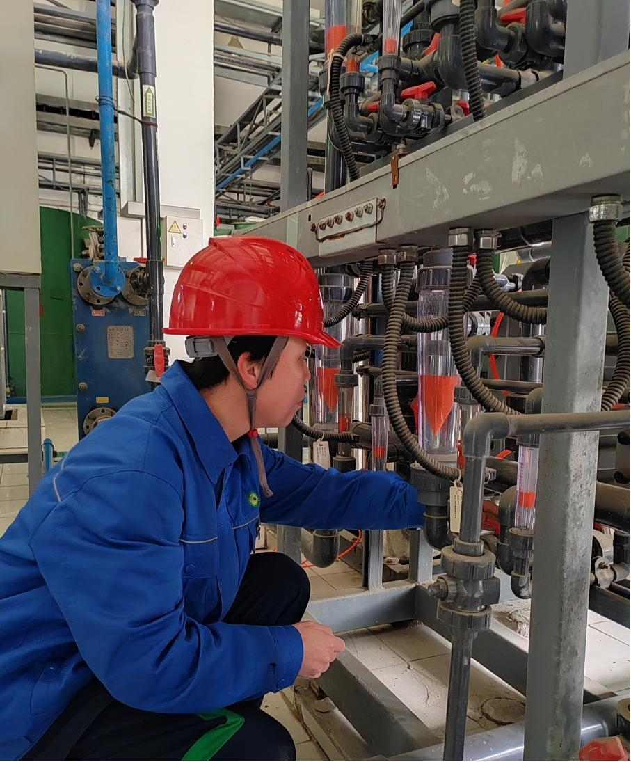 她們是密云公司水處理專業(yè)的三名女將,日常負責開展水質(zhì)的監(jiān)督化驗、設(shè)備的巡檢切換等工作,為生產(chǎn)制備充足且水質(zhì)合格的除鹽水。她們分工明確,配合默契,堅持“安全無小事”理念,時時關(guān)注數(shù)據(jù),發(fā)現(xiàn)問題第一時間匯報并采取相應(yīng)措施,為項目的安全穩(wěn)定運行做出了積極貢獻。有人覺得天天重復(fù)的工作內(nèi)容枯燥,但她們說,真正熱愛的工作就是詩和遠方。
