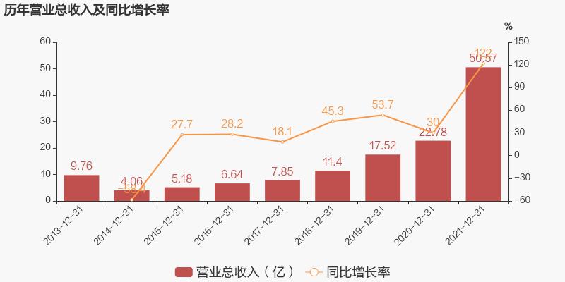 ??? 綠色動(dòng)力于2022年3月30日披露年報(bào),公司2021年實(shí)現(xiàn)營(yíng)業(yè)總收入50.6億,同比增長(zhǎng)122%,增幅創(chuàng)7年新高;實(shí)現(xiàn)歸母凈利潤(rùn)7億,同比增長(zhǎng)38.6%;每股收益為0.5元。