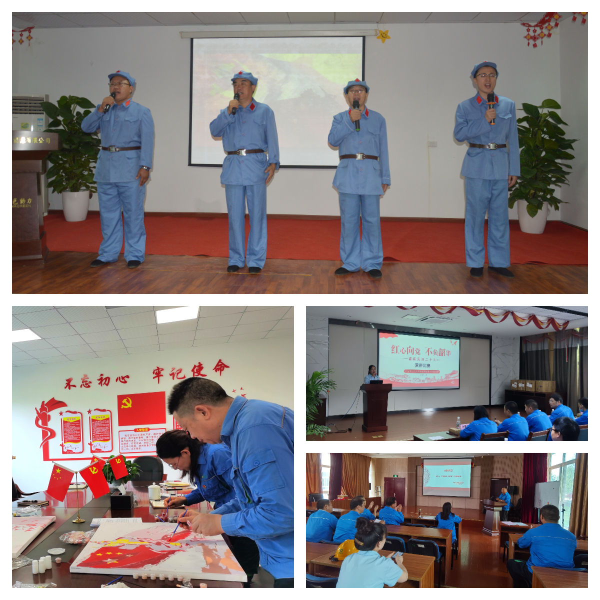 各黨支部還開展了形式生動的朗誦、演講和繪畫活動。乳山公司黨員在詩詞朗誦會上熱情謳歌革命先烈和仁人志士大無畏的革命精神。博白公司黨員將對黨的祝?;鞴P尖的色彩,以畫傳情,向黨的生日獻(xiàn)禮。石首公司黨員通過聲情并茂的演講抒發(fā)紅心向黨、不負(fù)韶華的志向。