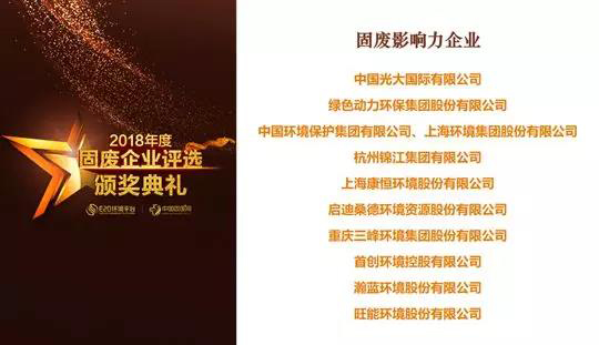 該評(píng)選旨在樹立行業(yè)標(biāo)桿、尋找企業(yè)黑馬、揭示產(chǎn)業(yè)趨勢(shì),自2009年以來,固廢企業(yè)評(píng)選已成功舉辦10屆,見證了固廢行業(yè)十年來的發(fā)展與變革,2018年度(第十二屆)固廢企業(yè)評(píng)選,歷時(shí)兩個(gè)多月,堅(jiān)持公平公正公開原則,從多維度綜合評(píng)選,以線上線下結(jié)合的形式,最終評(píng)選出“2018年度固廢影響力企業(yè)”。綠色動(dòng)力集團(tuán)憑借A+H股兩地上市、環(huán)保版圖持續(xù)擴(kuò)張、焚燒廠鄰避變鄰利、打造兩山經(jīng)濟(jì)樣板項(xiàng)目、固廢多領(lǐng)域布局、垃圾焚燒業(yè)績(jī)快速增長(zhǎng)等優(yōu)勢(shì)榮獲此項(xiàng)殊榮。