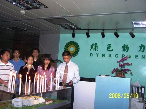 ???? 為了表達綠色動力領導和員工對地震遇難同胞的深切哀悼,5月19日下午2點28分,在集團公司執(zhí)行董事黃建中致哀悼詞后,集團公司全體領導和員工在集團公司辦公室面向點燃的“心形”蠟燭為災區(qū)死難同胞肅立默哀三分鐘。