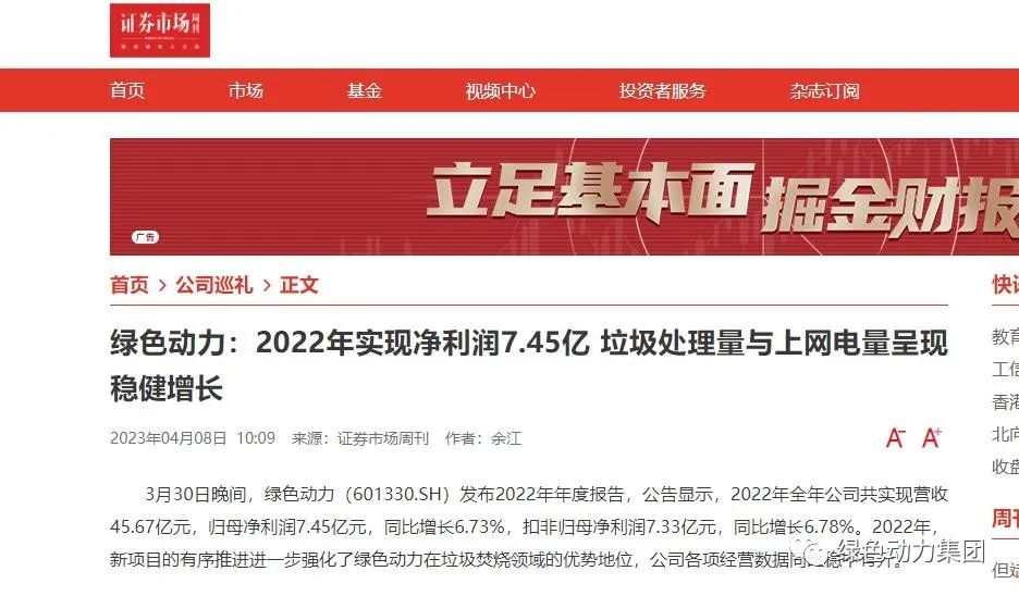3月,綠色動(dòng)力集團(tuán)發(fā)布2022年年度報(bào)告。公告顯示,綠色動(dòng)力全年垃圾處理量與上網(wǎng)電量呈現(xiàn)穩(wěn)健增長(zhǎng),共實(shí)現(xiàn)營(yíng)收45.67億元,歸母凈利潤(rùn)7.45億元,同比增長(zhǎng)6.73%,扣非歸母凈利潤(rùn)7.33億元,同比增長(zhǎng)6.78%。各項(xiàng)生產(chǎn)指標(biāo)和經(jīng)營(yíng)數(shù)據(jù)同比穩(wěn)中有升,集團(tuán)在垃圾焚燒發(fā)電領(lǐng)域的優(yōu)勢(shì)地位進(jìn)一步增強(qiáng)。