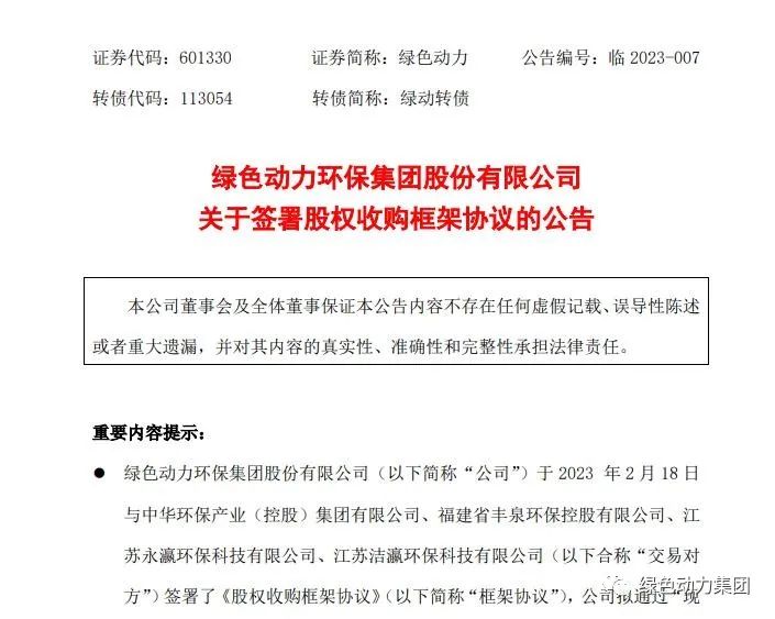 2月,綠色動(dòng)力集團(tuán)與中華環(huán)保產(chǎn)業(yè)(控股)集團(tuán)等四家公司簽署了《股權(quán)收購(gòu)框架協(xié)議》,擬通過“現(xiàn)金”或“現(xiàn)金+股權(quán)”的方式購(gòu)買交易對(duì)方所持有的蘭州等5個(gè)垃圾發(fā)電項(xiàng)目的全部或部分股權(quán),擬收購(gòu)項(xiàng)目的總垃圾處理規(guī)模為4,400噸/日,遠(yuǎn)期規(guī)模為6,900噸/日。收購(gòu)?fù)瓿珊?,集團(tuán)將進(jìn)一步擴(kuò)大垃圾焚燒發(fā)電業(yè)務(wù)規(guī)模,提高市場(chǎng)占有率與競(jìng)爭(zhēng)力。