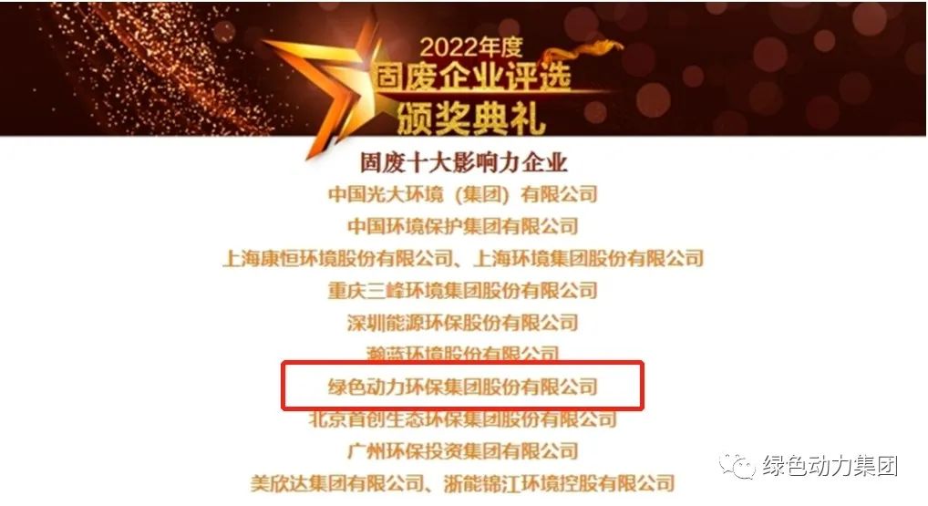 1月,綠色動(dòng)力獲得了E20環(huán)境平臺(tái)頒發(fā)的“2022年度固廢十大影響力企業(yè)”獎(jiǎng)項(xiàng),這也是集團(tuán)第13次蟬聯(lián)該榮譽(yù)。
