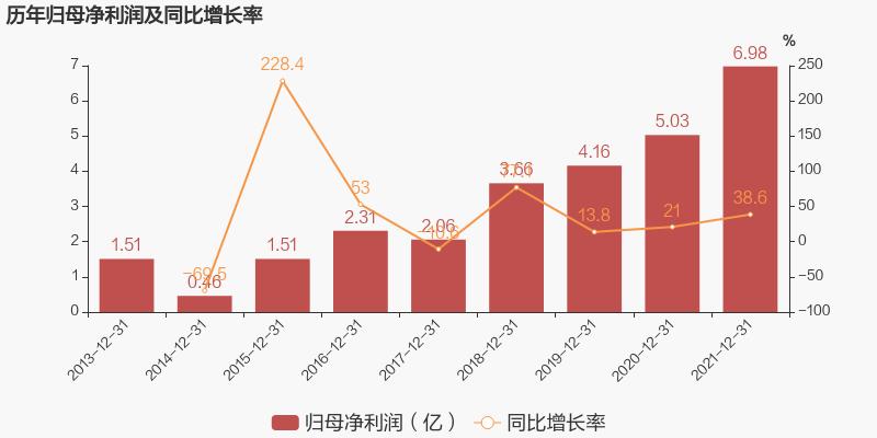 ??? 綠色動(dòng)力于2022年3月30日披露年報(bào),公司2021年實(shí)現(xiàn)營(yíng)業(yè)總收入50.6億,同比增長(zhǎng)122%,增幅創(chuàng)7年新高;實(shí)現(xiàn)歸母凈利潤(rùn)7億,同比增長(zhǎng)38.6%;每股收益為0.5元。